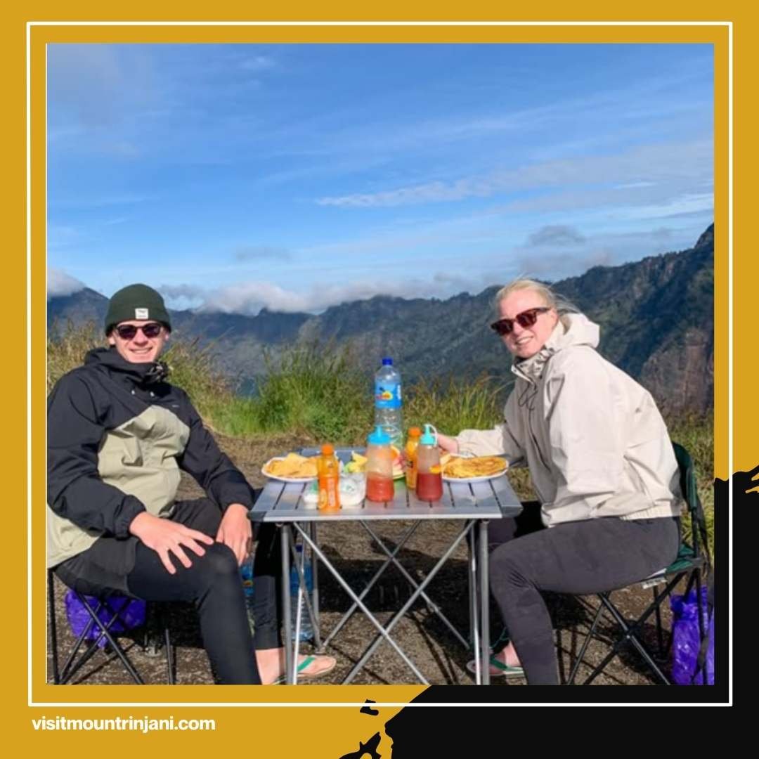Di sini, kamu bisa menikmati pemandangan Danau Segara Anak dari ketinggian sambil melihat sunset yang memukau. Malam hari diisi dengan makan malam hangat yang disiapkan oleh tim porter profesional.